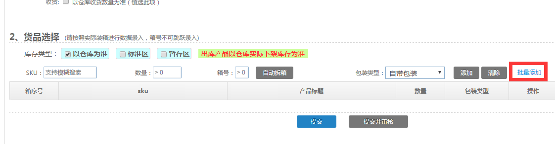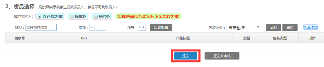 5.點(diǎn)擊【提交】,以便于箱內(nèi)貨品變動(dòng)時(shí)可以更改入庫(kù)單信息